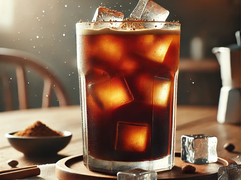 1. Pour chilled coffee into a highball glass with ice.